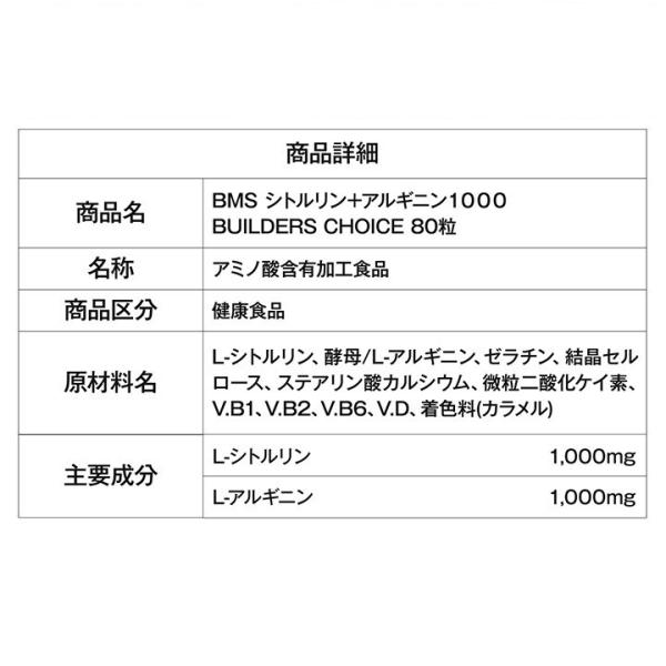 名称 | BMS シトルリン+アルギニン1000 BUILDERS CHOICE |