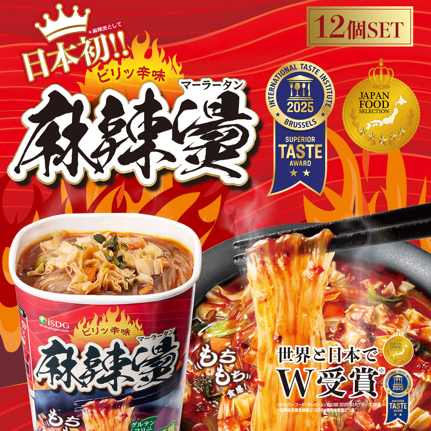 | 特徴 | ビリッと辛味!麻辣湯 ・グルテンフリー※1 ・もちもち食感のさつまいも麺※2仕様 ※1グルテンを含まないさつまいも芋でん粉麺(春雨)を使用 ※2さつま芋でん粉で作られた春雨 ●麻辣湯とは? ビリっと痺れるスパイスと唐辛子の辛味が効いたスープで、中国で親しまれている一度食べたらクセになる一品です。 |