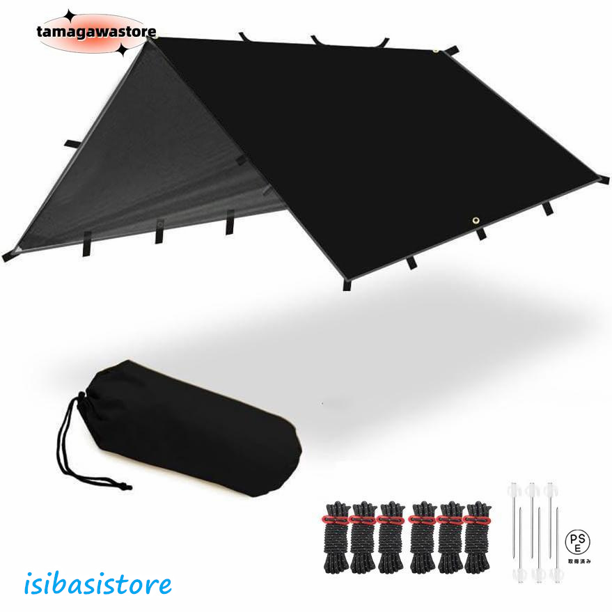 タープ キャンプタープ 天幕 日除けシェード サンシェルター 210T素材 19箇所ループ 軽量 防水 日除け 遮光遮熱 3× 4m 専用収納バック付き
