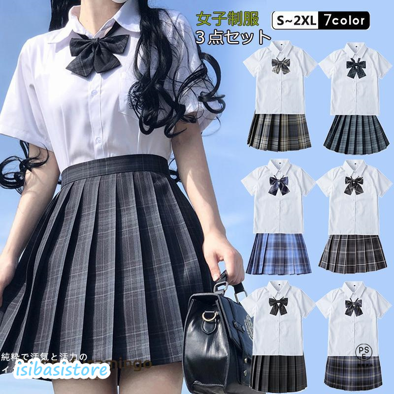 女子高校 なんちゃって制服 学生服 女子 高校生 制服 リボン 蝶結び 制服 スカート プリーツスカート チェック柄 女子高生 文化祭 JK スカート かわいい 3点セット コスプレ衣装 制服 コスプレ JK ギャル ハロウィン コスプレ 仮装 コスチューム スクール JK制服3点セット 女の子スーツ スクールシャツ 角襟 女子 長袖 制服 シャツ スクールブラウス Yシャツ ワイシャツ フォーマル リボン 蝶結び スカート コスプレ 入学式 卒業式 上下セット S M L XL 2XL