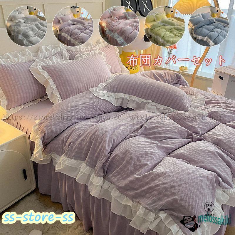 布団カバーセット フリル 可愛い 姫系 寝具カバー ベッドカバー フラットシーツ ボックスシーツ 洗える 掛け布団カバー 韓国風 シングル セミダブル