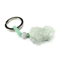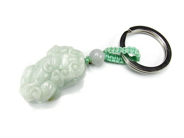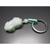 天然石ヒキュウ彫りキーホルダーAAA本翡翠中大型お守り石街