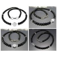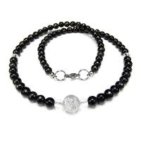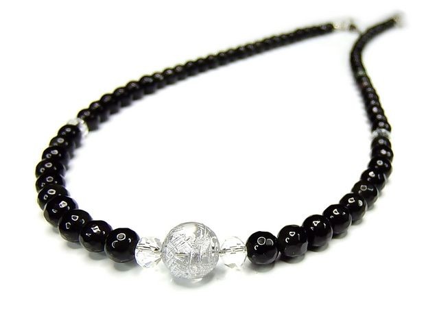 開運まよけネックレス昇龍水晶銀箔10mmオブシディアン6mm天然石石街
