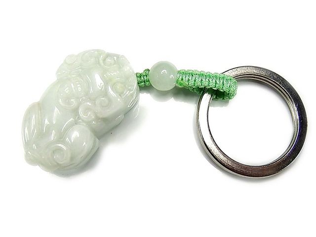天然石ヒキュウ彫りキーホルダーAA本翡翠中大型財運御守石街