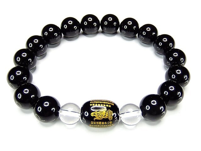 般若心経オニキスタンプル水晶オニキス10mm天然石ブレスレット