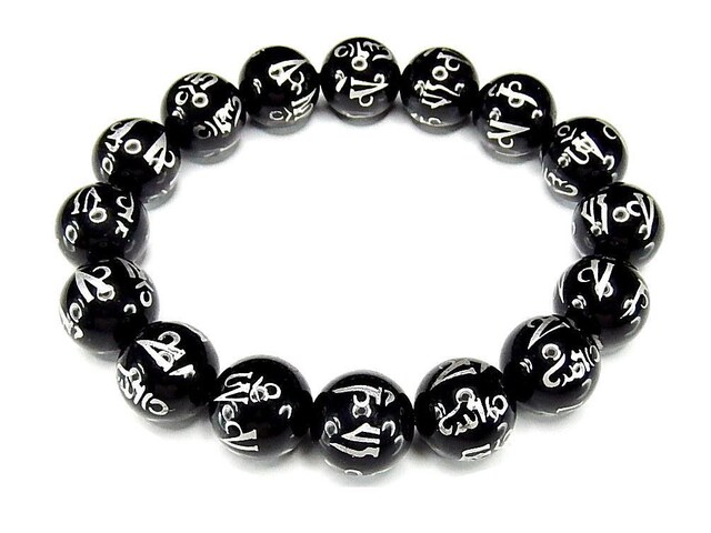 AAAオニキス六字真言銀彫り約14mm大玉ブレスレット天然石魔除け厄除け