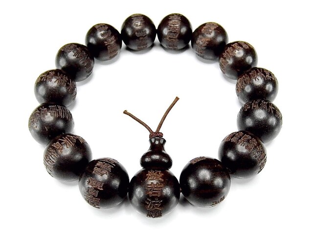 訳有格安般若心経中文漢字素彫り良質黒檀木15mm数珠念珠ブレスレットK1-9-105