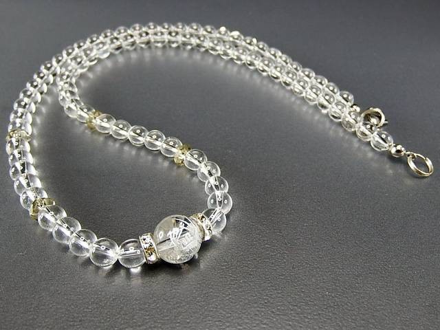 開運天然石昇龍本水晶手彫り銀箔水晶ネックレス