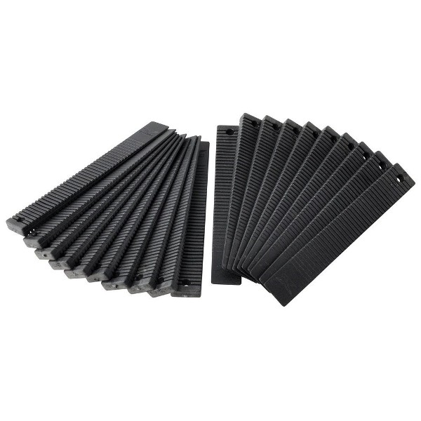 ・墓石など重量物の施工時にレベル調整に使うクサビです。細かいレベル出しに使いやすいサイズで、石材施工だけでなく家具や機械などの設置にもご使用頂けます。プラスチック樹脂製で角への当たりが柔らかく対象物を傷付けません。また、折れ目が入っているので、レベル調整後ははみ出ている部分を折ってしまうことができます。木材の隙間に入れてウレタン系ボンドで接着ができます。