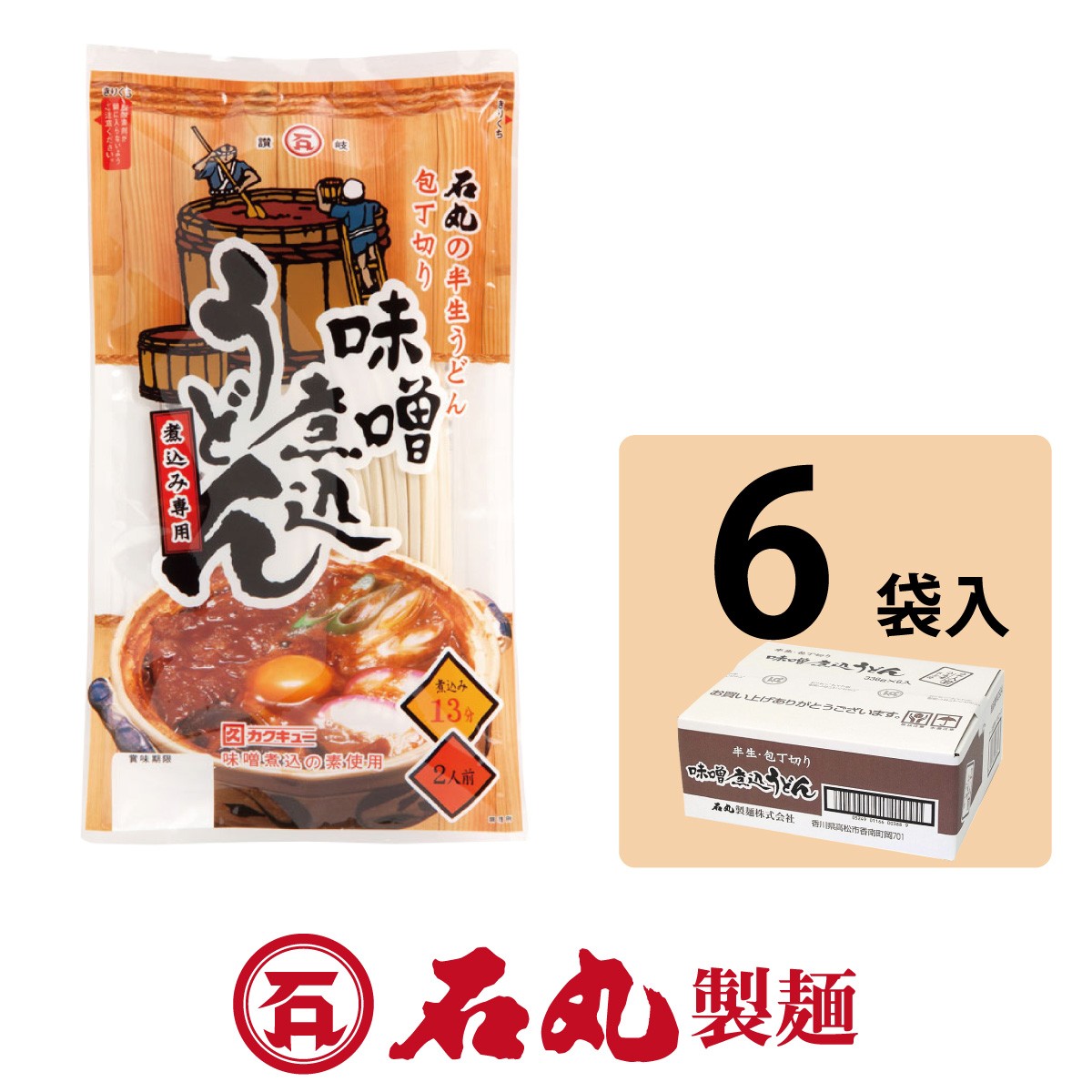 半生味噌煮込うどん 2人前 6袋 煮込み専用麺 赤みそ 八丁味噌 贈り物 自宅 香川 石丸製麺公式