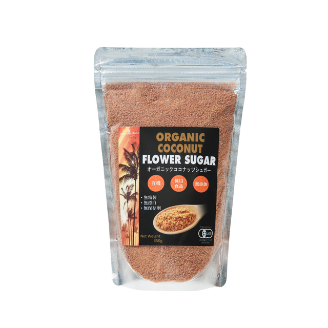 オーガニックココナッツシュガーは、他の砂糖類に比べてGI値が低いのが特徴です。白砂糖のGI値は110と言われていますが、ココナッツシュガーのGI値は35です。