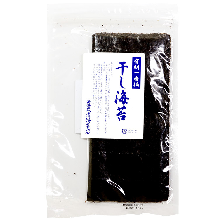 昔ながらの磯の香りがする海苔です。そんな海苔の味わいは、酸処理をせず、有明産の秋芽一番摘みを天日で乾燥させるという、古くからの製法を守っているからこそのものです。