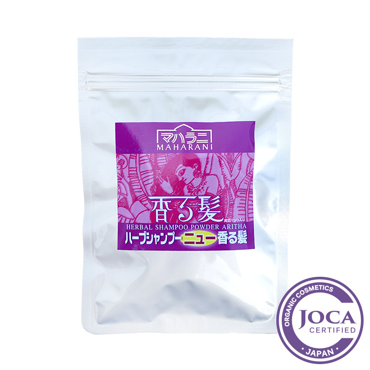 | 全成分: | アンマロク果実(アムラ)、ムクロジ果実(リタ)、カッシアイタリカ葉(カッシア)、バンウコン根(カチュールスガンディ)、フラー土(ムルタニミッティ)、ヘンナ(ヘナ) ※「ハーブシャンプーニュー香る髪」にはヘナが配合されていますが、白髪はほとんど染まりません。ただし、繰り返し使用すると、白髪にうっすらとオレンジ色が入ります。また長時間放置するとヘナの色素で手や爪が染まってしまうのでご注意ください。 ※「香る髪」粉末を水溶きした際、多少のザラつきが感じられる場合がありますが、仕上がりや使用には問題がありません。 |