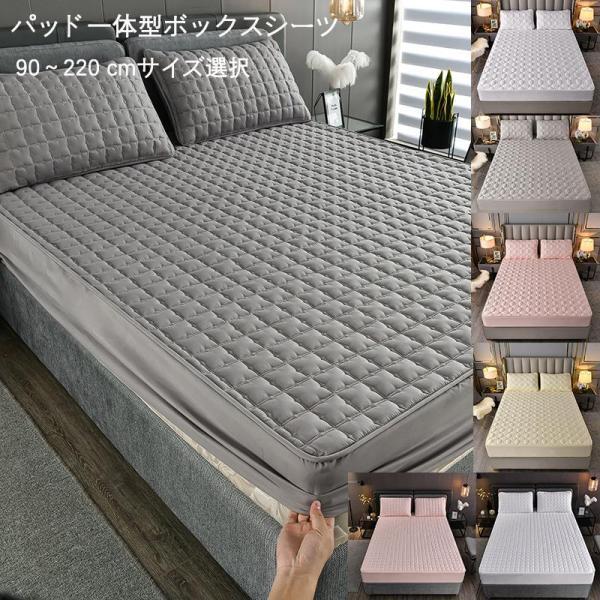 パッド一体型ボックスシーツ ベッドパッド 敷きパッド 綿 シングル 洗える オールシーズン 全周ゴム付き ベッドカバー ベッドシーツ ベッドマット