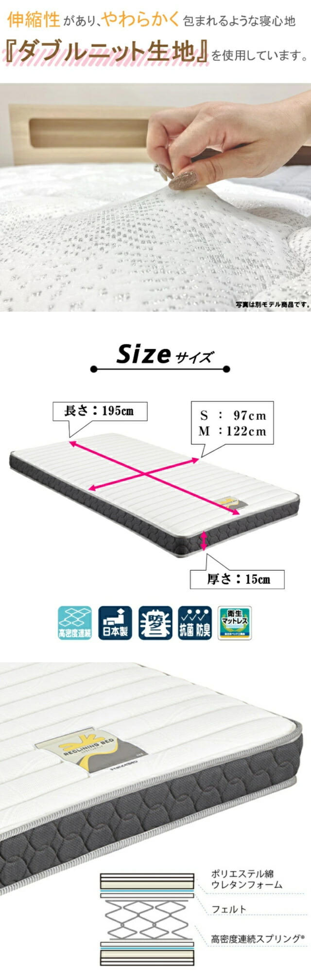シングル :幅 970×長さ1950×厚さ150mm(15kg)