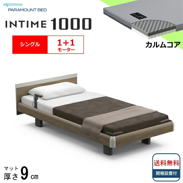 シーツプレゼント 設置無料 シングル パラマウントベッド 電動ベッド インタイム1000 スクエアボード ハリウッド 1+1モーター マット付 カルムコア