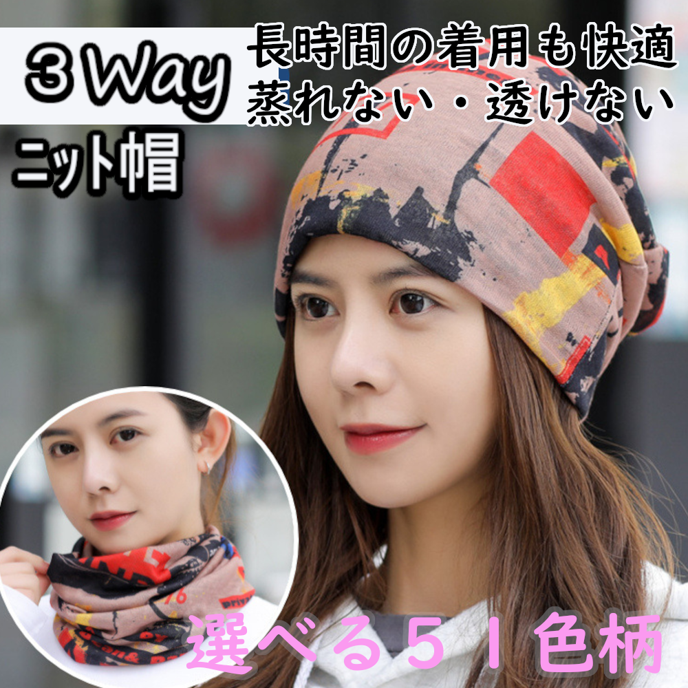 帽子・ターバン・ネックウォーマーと3通りにアレンジ可能