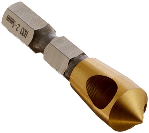 「商品情報」木材・アルミ・鉄材のネジ穴の面取りに パイプ内径の面取り・穴あけ後のバリ取りに 鉄・ステンレス・非鉄金属用向け アクリル板にも使えます面取り角度:90° 加工穴径:2~5ミリ 六角軸6.35ミリハイス鋼チタンコーティング「主な仕様」面取り角:90°。