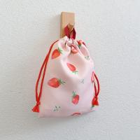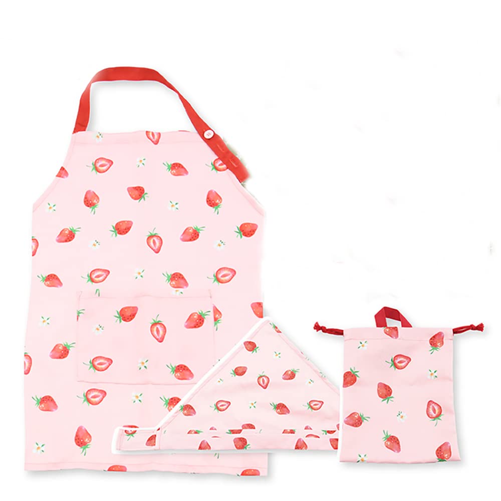 【即発送】ヤクセル 収納袋付き エプロン 子供用 3点セット 身長 120~150cm 三角巾 巾着 調理実習 L いちごとおはな
