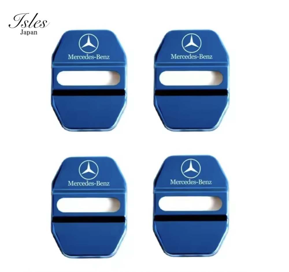 【新着特価!】メルセデスベンツ 専用ドアロックカバー ストライカーカバー 鏡面ステンレス製 簡単取り付け 4PCS1台分 ブルー