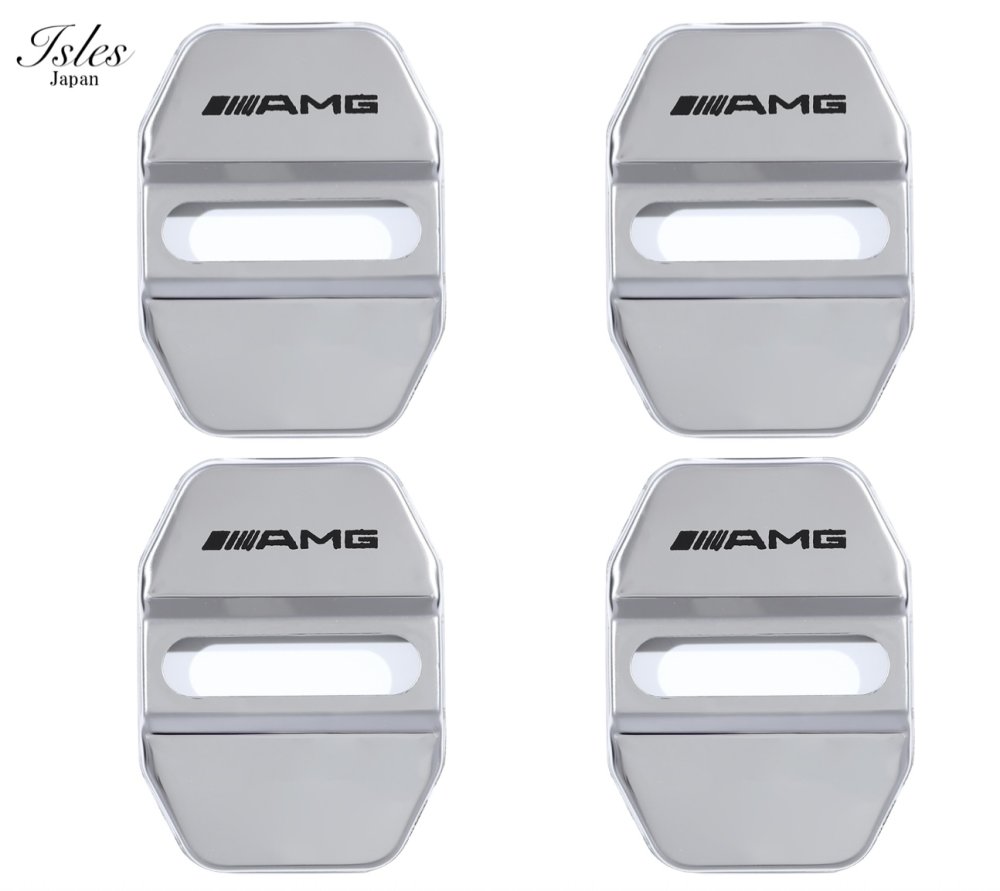 【新着特価!】メルセデスベンツ AMGドアロックカバー ストライカーカバー 簡単取り付け 4PCS1台分 シルバー