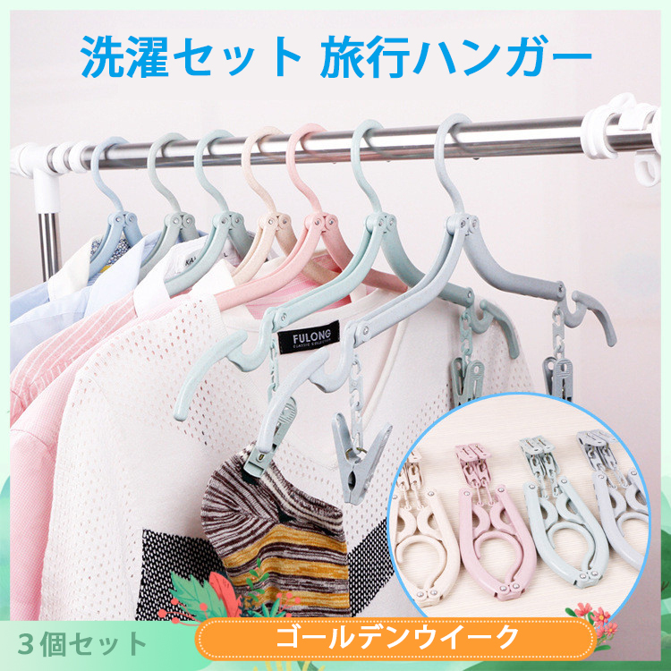 洗濯セット 旅行ハンガー 折畳み式 ハンガー 3個セット 洗濯 収納 部屋干し 旅行 携帯 トラベル 海外旅行