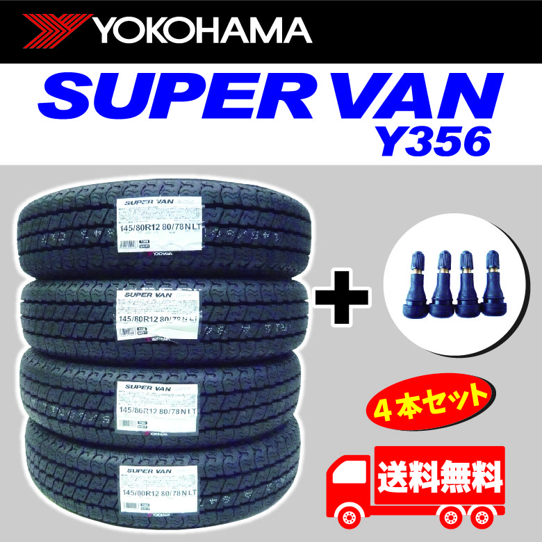 【2025年製】 Y356 ヨコハマ 145/80R12 80/78N (145R12 6PR相当品) 4本セット 送料無料 太平洋工業 TR413 ゴムバルブ4個付き