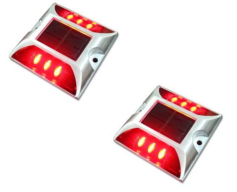 送料690円 道路鋲 ソーラー LED 2個 セット 点滅 警告灯 誘導灯 LEDライト ガーデン 埋め込み 駐車場 防水 屋外 駐車場 歩道 交差点 道路 地面 設置