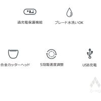 誰でも簡単・キレイにカットできます。4種類のスライドアタッチメント付属で、いろいろな髪型が簡単に実現。■アタッチメントの交換で、いろいろな髪型が簡単に実現アタッチメント4つ(3mm、6mm、9mm、12mm)お好きな長さやスタイルに対応できる櫛を選択できます。■初心者でも安心運転速度調整機能つきバリカン本体のダイヤルにて運転速度を調整できます。運転速度を調整することで不慣れな方でも落ち着いてゆっくりご利用になれます。また、本体のみでもダイヤルを回すだけで0.8mm~2.0mmの高さにそろえられます。・すばやくカットしても引っかかりにくい 「45°鋭角刃」・掃除が簡単で清潔 「ウォータースルー洗浄」・お好きな場所でらくらくカット 「充電式」・高級感のある 「クリーン&スタイリッシュデザイン」(充放電指示、過充電保護機能)