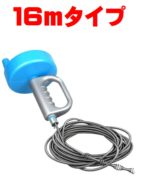 送料690円 パイプクリーナー 16m 詰まり ワイヤー ブラシ 回転式 排水口 洗面所 トイレ お風呂 キッチン 水回り 修理 強力 掃除