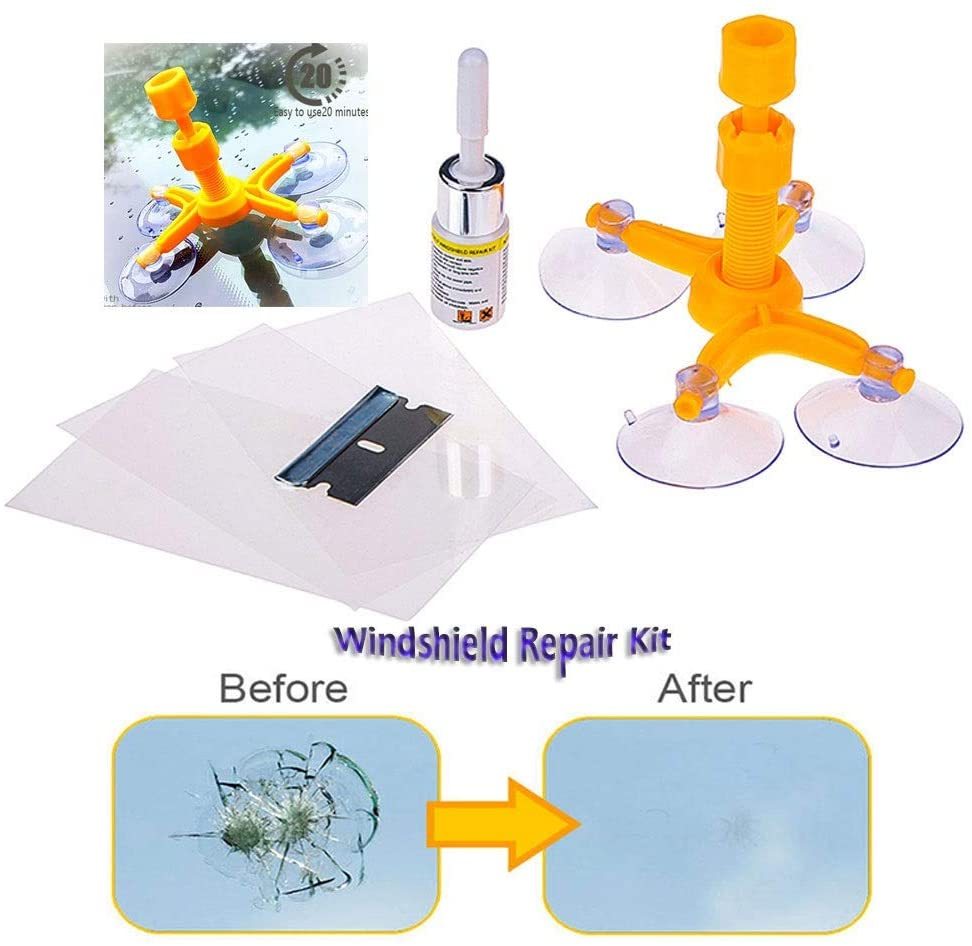 フロントガラス リペア キット ポジショニングツール DIY 5回分 窓 車 ガラス キズ ひび 飛び石 補修 修復 修理 日本語説明書付き