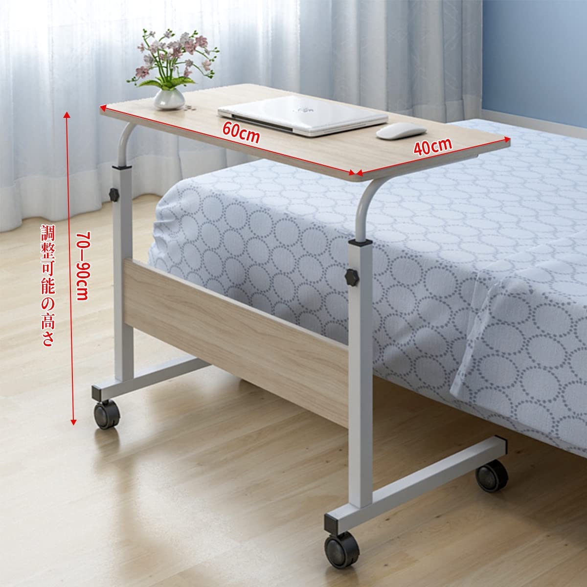 ベッドテーブル サイドテーブル パソコンデスク キャスター 介護テーブル 高さ調節可能 カフェテーブル 病院 昇降 在宅勤務 テレワーク