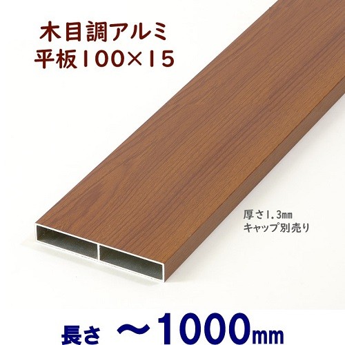 アルミ板材 木目調 平板 100X15XL1000mm 厚み1.3mm チーク フェンス 角パイプ