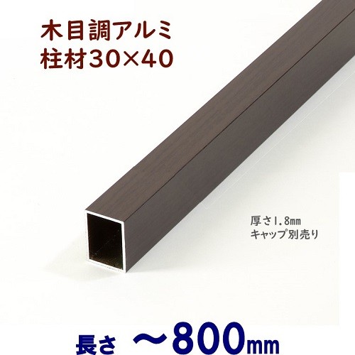 アルミ角柱 木目調 柱材 30X40XL800mm 厚み1.8mm ダーク 格子 フェンス 支柱 角パイプ 目隠し