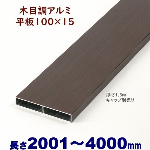 アルミ板材 木目調 平板 100X15XL4000mm 厚み1.3mm ダーク フェンス 角パイプ