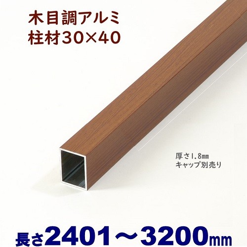 アルミ角柱 木目調 柱材 30X40XL3200mm 厚み1.8mm チーク 格子 フェンス 支柱 角パイプ 目隠し