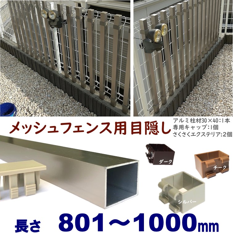 メッシュフェンス用目隠し 後付け 簡単取付 シルバー アルミ柱材30X40XL1000mm 厚み1.6mm キャップ付 さくさくエクステリアセット