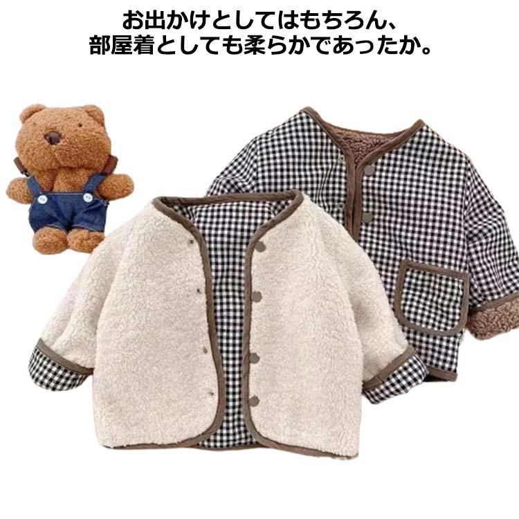ベビー服 子供服 キッズ もこもこ ボアジャケット ノーカラーコート リバーシブル アウター 韓国 ジャケット 無地 部屋着 韓国 出産祝い プレゼン