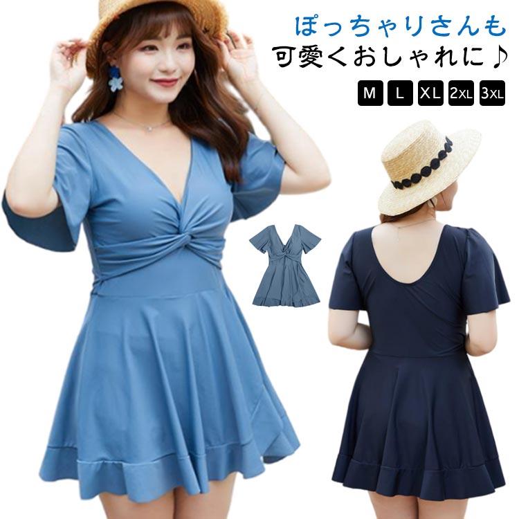 水着 体型カバー 温泉 露出控えめ ママ水着 ぽっちゃり フレア袖 ワンピース水着 レディース プール みずぎ 遊び オールインワ 体型カバー水着