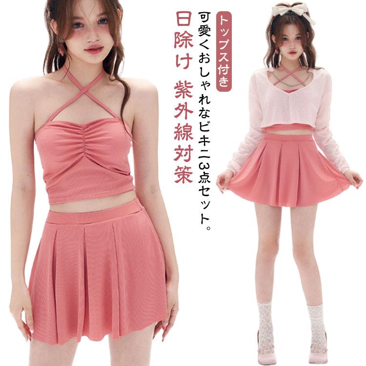 シアートップス 水着 10代 長袖 スカート ビキニ 3点セット 20代 30代 体型カバー 40代 40代 スイムウェア セパレート 可愛い プリ