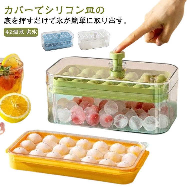 シリコン 製氷器 製氷皿 丸氷 透明な氷 42個取 大容量 製氷機 家庭用 蓋付き ワンプッシュ アイストレー アイスボール 丸い氷 小粒 氷入れ容器