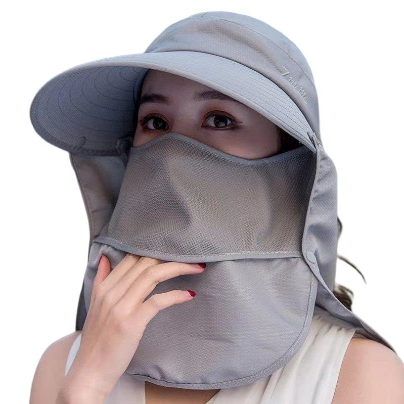 帽子 レディース uvカット - UVカット:360度、顔だけでなく頭から首の後ろ部分までしっかりガード! 大きなつば、日除け垂れ、フェイスカバーが日差しをしっかりガード!ファスナー付きだから簡単に帽子上部を取り外しでき、サンバイザーとしても使えます。