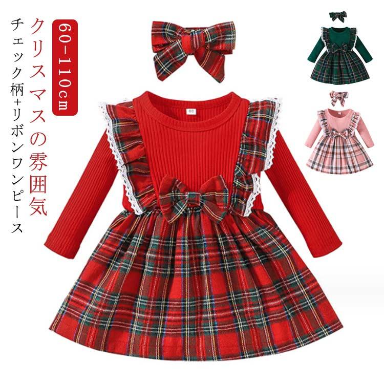 リボン 子ども 120cm 長袖 100cm ワンピ チェック柄 ふんわり 子供服 総柄 こども キッズ ガールズ 総柄 ワンピース 90cm 110