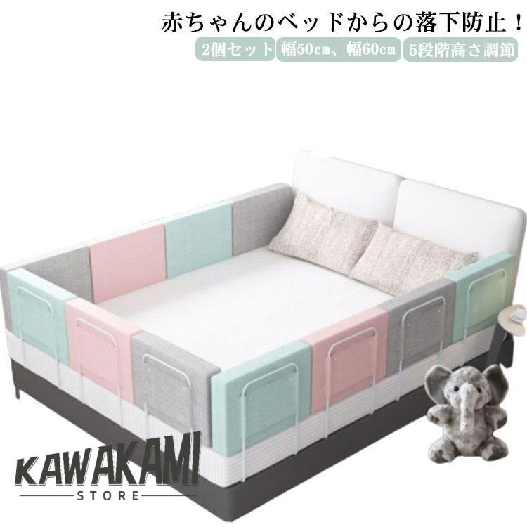 ベッドガード ベッドフェンス 幅50cm 幅60cm 2個セット ベビー 赤ちゃん 転落防止 落下防止 クッション ベッドガード 5段階高さ調節 幼児