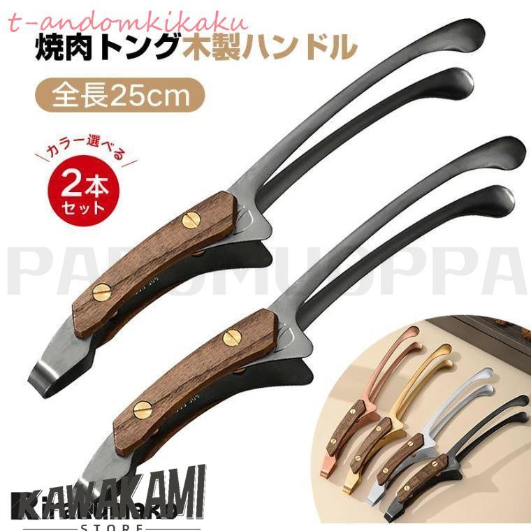 カラー選べる2個セット 焼肉トング 木製ハンドル カ トング ステンレス 焼肉 バーベキュー 揚げ物 bbq とんぐ キャンプ アウトドア 全長25cm