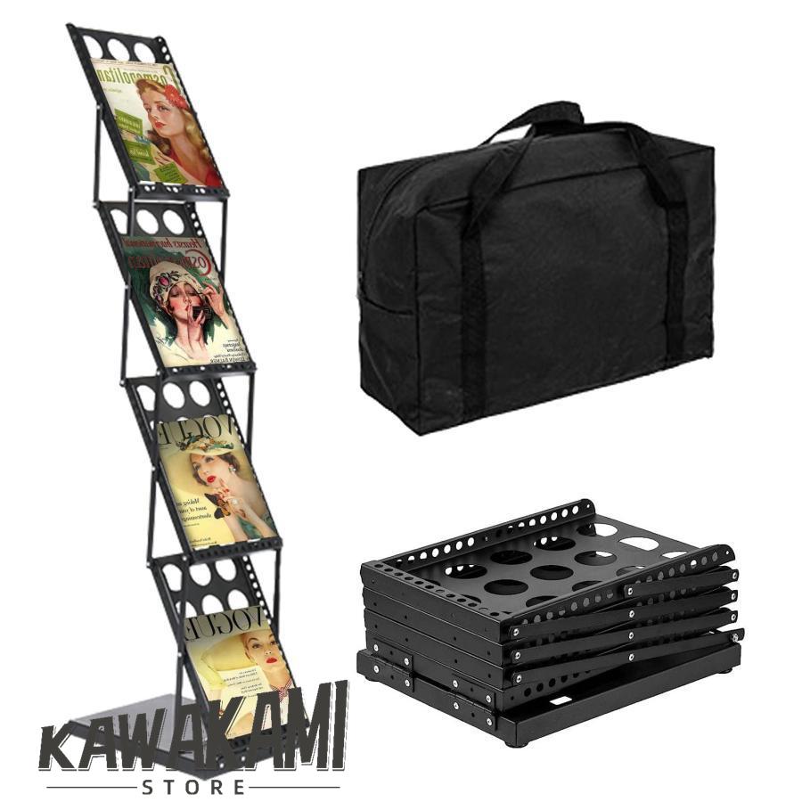 カタログスタンド マガジンラック 折りたたみ式4段アイアンシェルフオックスフォード布製バッグ付き A4情報ラック 片面パンフレットラック 縦型床置きファッショ