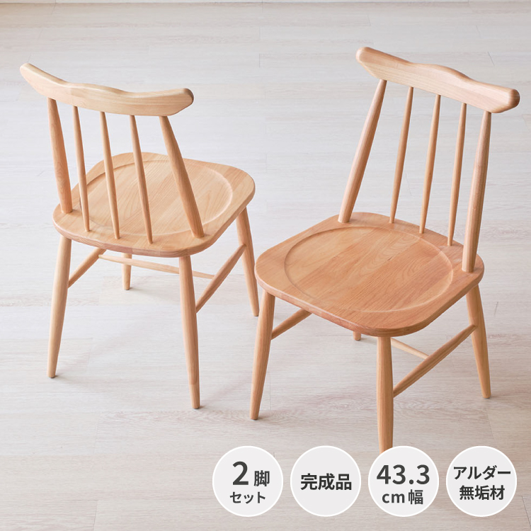 チェア 2脚 椅子 いす イス ダイニングチェア ダイニング 食卓 かわいい レトロ ナチュラル家具 北欧インテリア シンプルデザイン アルダー無垢材 背付き アームレスト無し 板座 長く使える |