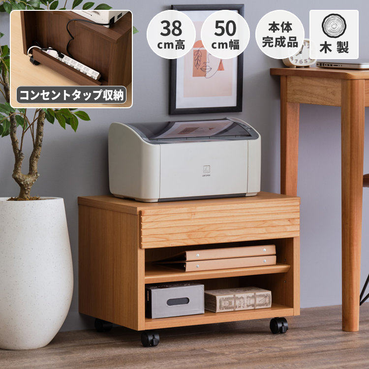 プリンターワゴン プリンターラック プリンター台 プリンター収納 引き出し付き ラック キ ャスター付き コピー用紙 a4 b4 書類 収納 無垢材 アルダー材 シンプル 書斎 子供部屋 リビング