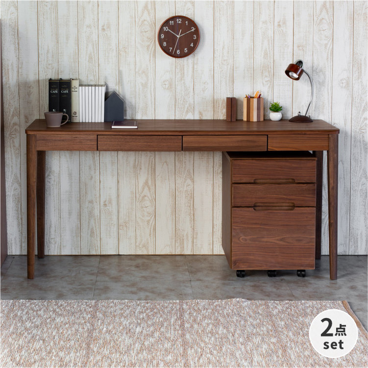 【セット商品】学習机 2点セット (机 ワゴン) ミディアムブラウン ISSEIKI 【4/15 ポイント5%UP!!】