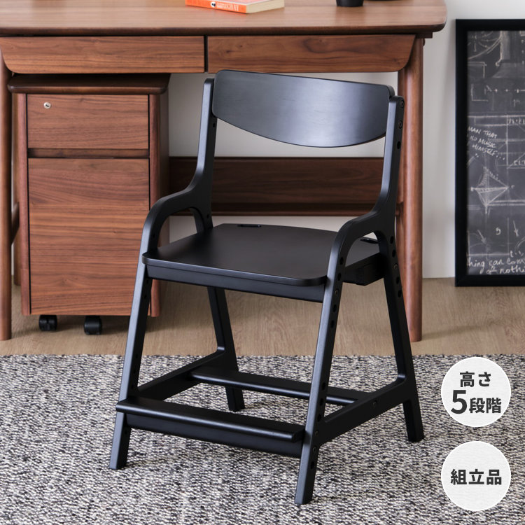 学習椅子 学習チェア デスク 椅子 イス 子供 キッズ 木製 北欧 高さ調節 姿勢 ダイニング ブラック 黒 組立品 ISSEIKI 【4/15 ポイント5%UP!!】